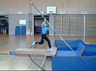 Anlaufen aus 6-8 Schritten mit Absprung auf einem "Kasten-T" mit
